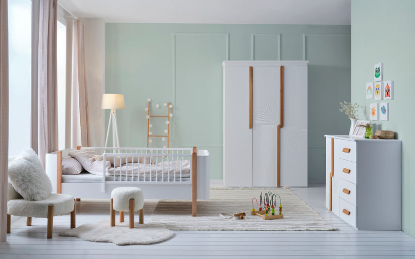 Lilium Bebek Odası, sade çizgileri ve doğal ahşap detaylarıyla bebek odalarına huzur, sıcaklık ve zarafet getiriyor. Yumuşak renk geçişleri, ferah atmosferi ve kaliteli malzeme yapısıyla bebeğinizin ilk odasını hem güvenli hem de estetik bir yaşam alanına dönüştürüyor.